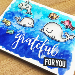 I finished the card off by adding a simple background of seaweed and coloring on the sentiment “sorry I forgot”. I love how this turned out and you can use the creative sentiment for a forgotten birthday or many other occasions.